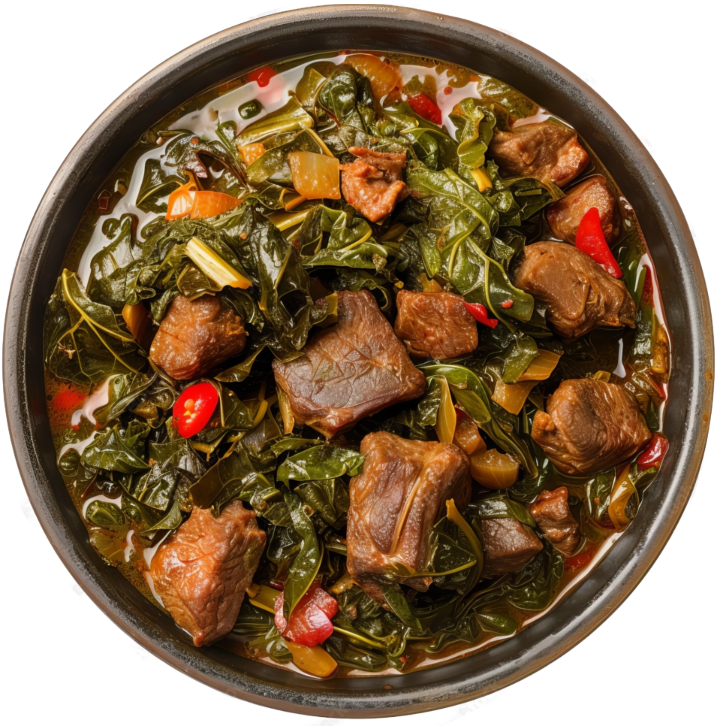 A colorful and nutritious soup made with a medley of fresh, leafy greens, simmered to perfection with spices and tender meat or fish. Pair it with your choice of Poundo, Eba, Wheat, Oat, Fufu, or Amala for a wholesome and satisfying meal that celebrates the richness of Nigerian flavors. Order Now