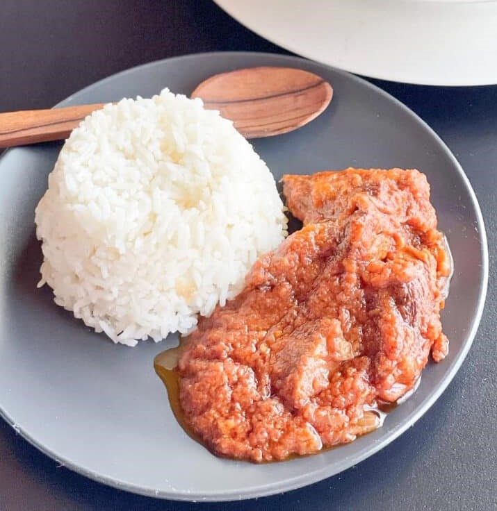 Indulge in fragrant Jasmine or hearty Parboiled Rice served with a rich and spicy Goat Meat Stew. This dish features tender chunks of goat meat simmered in a savory tomato-based sauce, creating a perfect harmony of flavors that complements the rice beautifully. Order Now